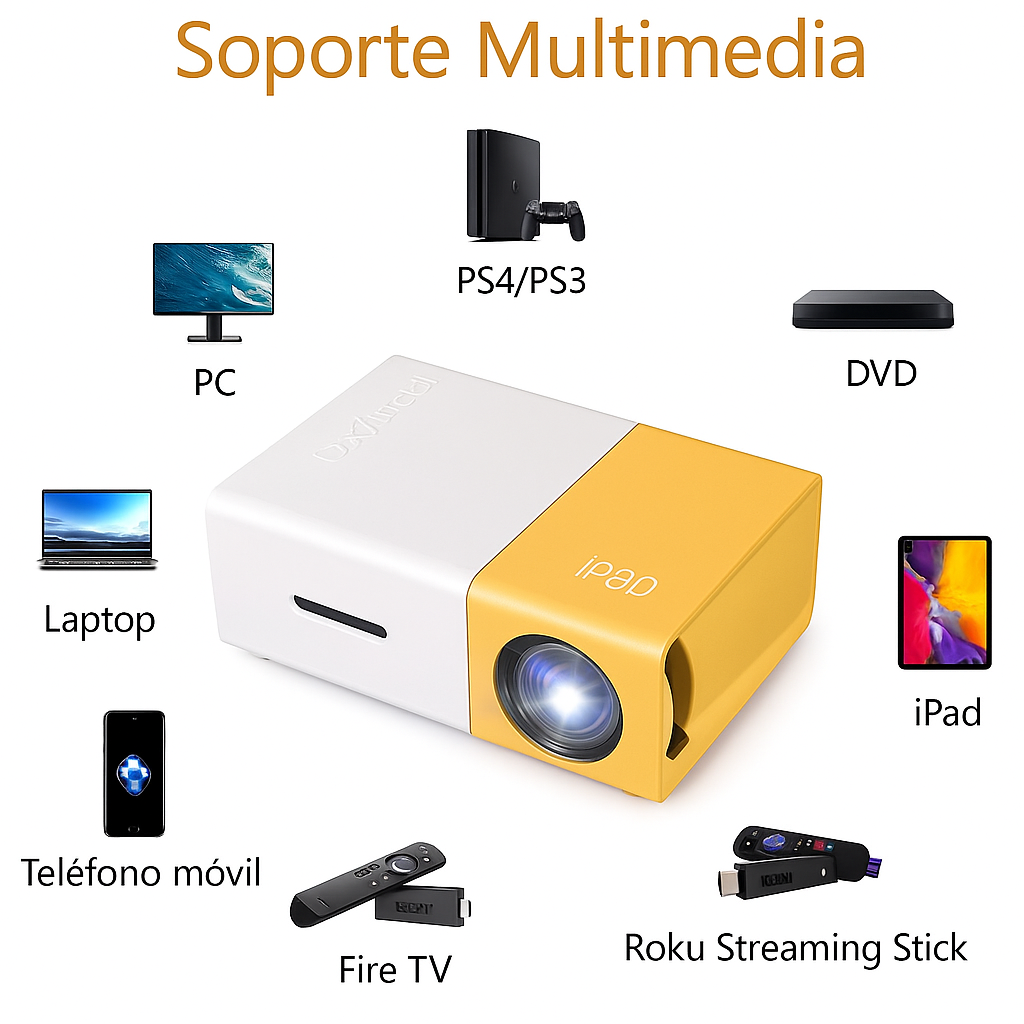 El Mini Proyector Portátil Fenix se adapta a tu estilo de vida brindándote una experiencia práctica y versátil. Su diseño compacto y ligero lo hace fácil de transportar, mientras que sus múltiples conexiones (HDMI, USB, AV y SD) permiten usarlo con celular, notebook, consola o TV Stick. Un proyector todo en uno que transforma cualquier espacio en tu propio cine, garantizando diversión y comodidad en cualquier momento.