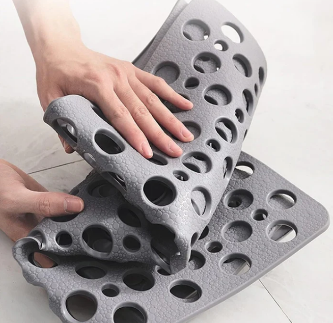 La Secure Shower Fenix está diseñada pensando en tu seguridad y bienestar. Su superficie antideslizante y sus ventosas firmes la mantienen fija al suelo, evitando resbalones incluso con los pies mojados. Gracias a sus ranuras de drenaje, el agua fluye con naturalidad, reduciendo el riesgo de acumulaciones y facilitando el secado.